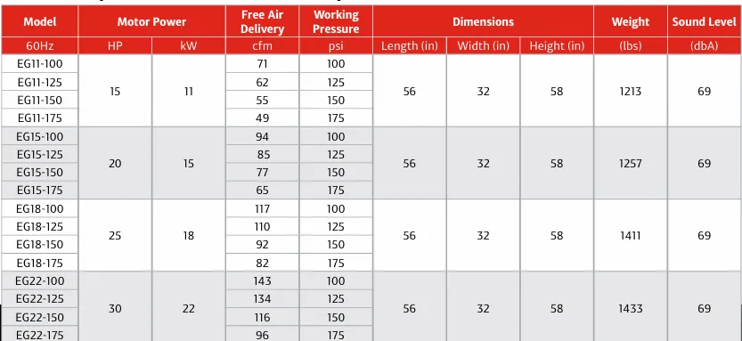Eg Series Gear Driven 75 to 100hp - Lifetime Warranty on Airends