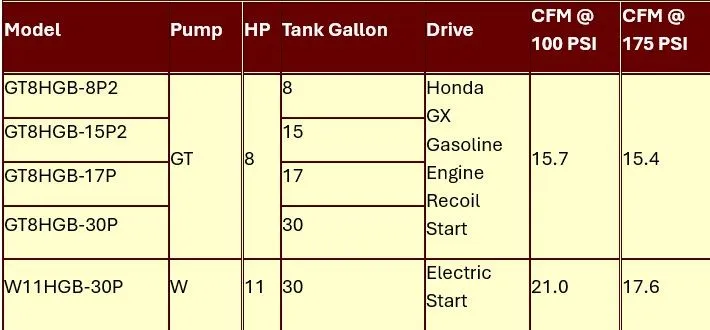 - Belt driven with a large flywheel for extra cooling and easier start-up