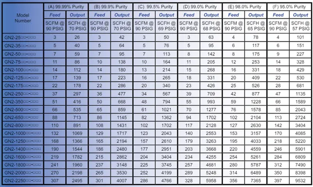 Uses pressure swing adsorption to produce a continuous, uninterrupted supply of 95 to 99.999% purity nitrogen gas from clean, dry compressed air.